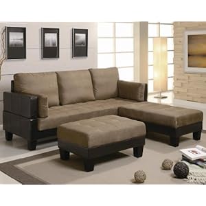 This modular Lauren Collection by Coaster offers comfortable seating as well as the ability to convert into a bed. With the included ottomans you can easily add a sleeping solution to your living room when guests come over. It features tan microfiber upholstery with dark brown vinyl base and exposed wood tapered feet. The set includes sofa, large ottoman and ottoman. This versatile set gives you many options for decorating your home!This item will make a great addition to your home. This item is usually in stock and ships at no additional charge,brought to you by efurnitureshowroom.com!Features:Sleeping SolutionComfortableDark Brown vinyl BaseDimensions:3pc Set (S+L+C) Sofa Bed Set (Coaster 300160)83.75004x33x23.00004